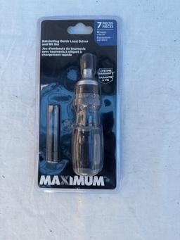 Description: Maximum - Ratcheting Quick Load Driver And Bit Set - 7 pc